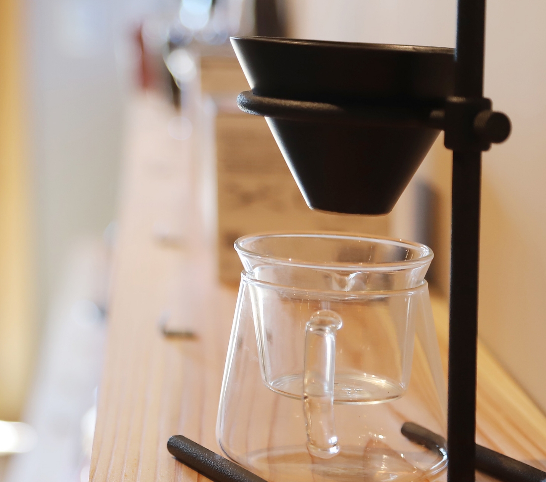 店内でも珈琲をお楽しみいただけるよう、数席ですがカフェスペースをご用意しております。お好きな豆をお選びいただき、丁寧にハンドドリップにて抽出いたします。